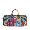 Cut and sew sharkmouth shape with embossed silver foil lettering.